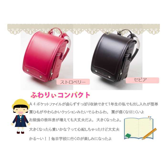 사뿐히 # 콤팩트 란도세루(초등학생이 어깨에 매는 가방)(소녀용)