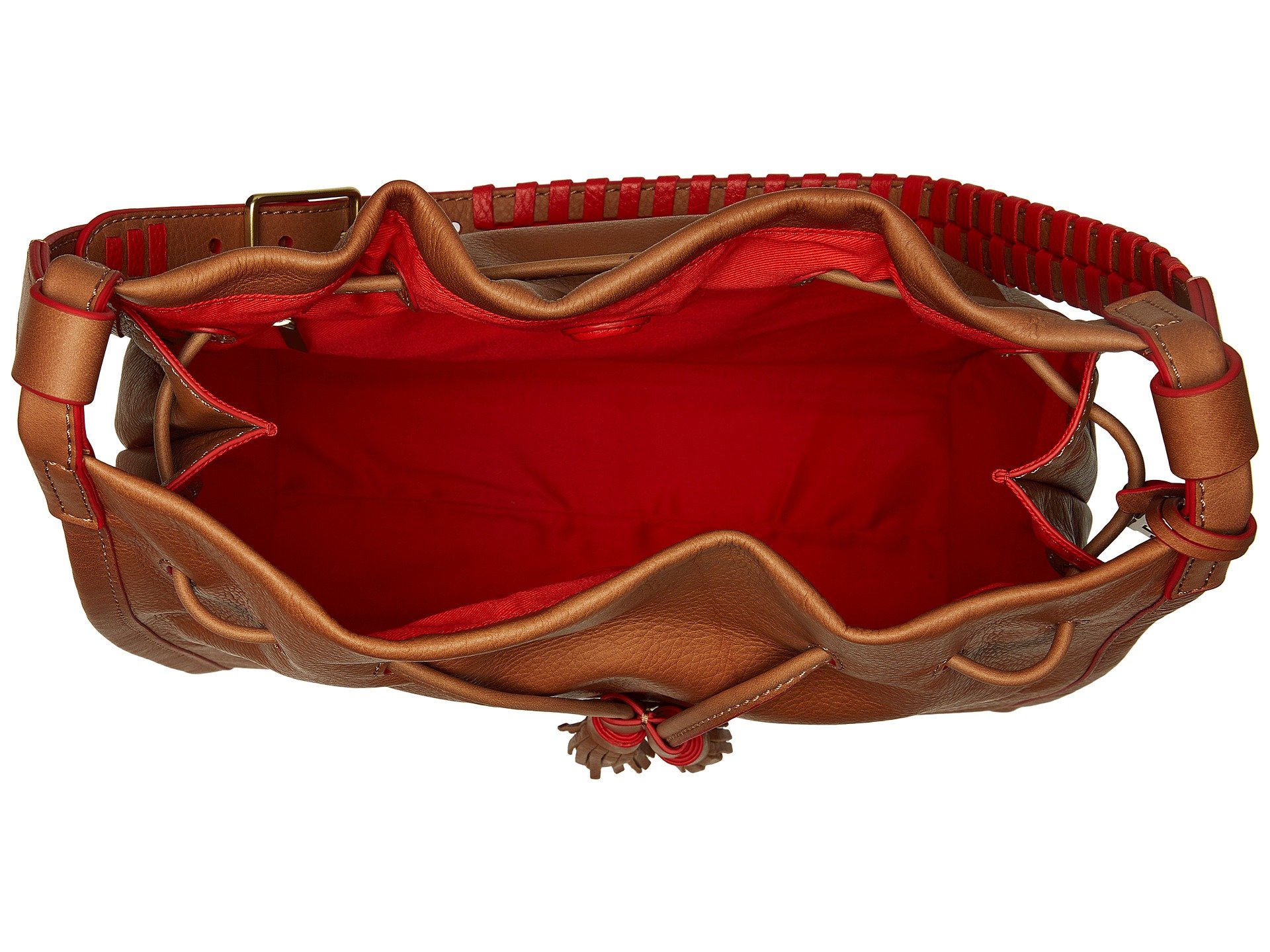 | Product Information SKU: #8885041Present your most adored style with this Fossil? Claire Drawstring bag.Made of leather with tassel detail.Drawstring with magnetic closure.Adjustable shoulder strapFlat bottom.Lining made of cotton.Interior back-wall zip pocket.Two interior slip pockets.Imported.This product may have a manufacturer's warranty. Please visit the manufacturer's website or contact us at warranty@support.zappos.com for full manufacturer warranty details.Please note, the hardware color and interior lining may differ from the color shown in the photo.Measurements: Bottom Width: 12 in Depth: 5 1?2 in Height: 13 in Strap Drop: 13 1?2 in |