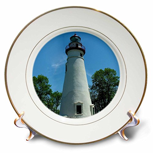 3dRose cp_61708_1 Marblehead Lighthouse Looking Over Lake Erie Porcelain Plate, 8-Inch