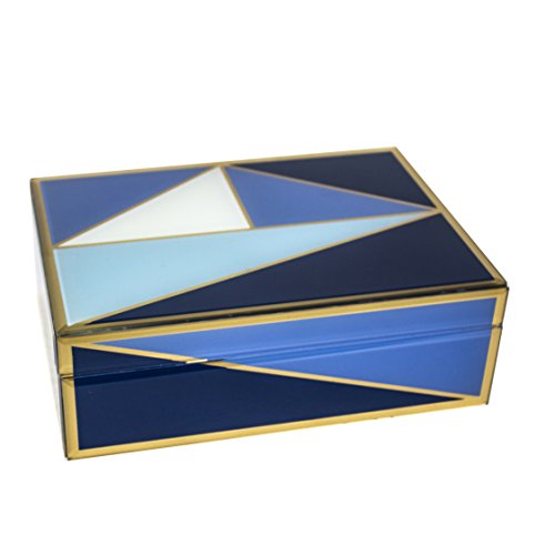 Sagebrook Home Glass & Wood Box W/Geometric Design, Blue