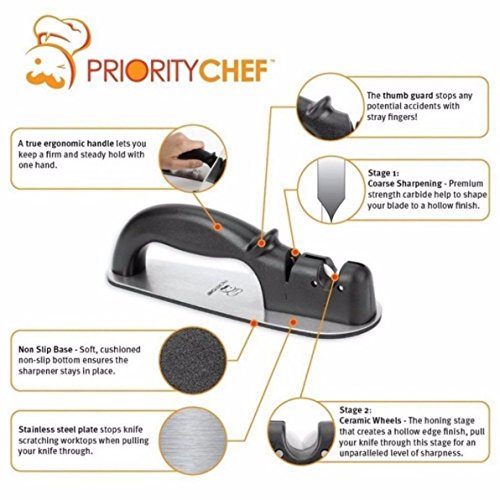 PriorityChef Precision Knife Sharpener, Designed To Create Sharp, Hollow-Finish Knife Edge, Patented Manual Tool with Non-Slip Steel Bottom – Safe and Easy to Use