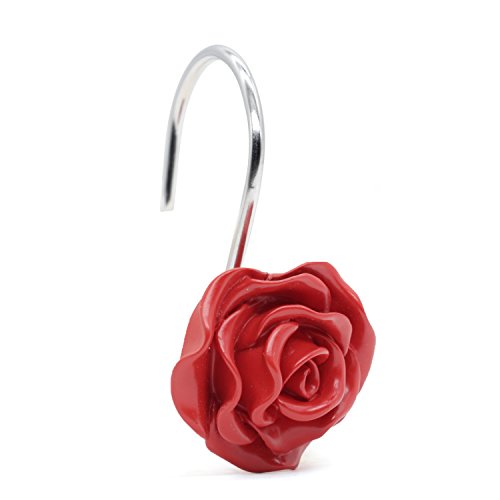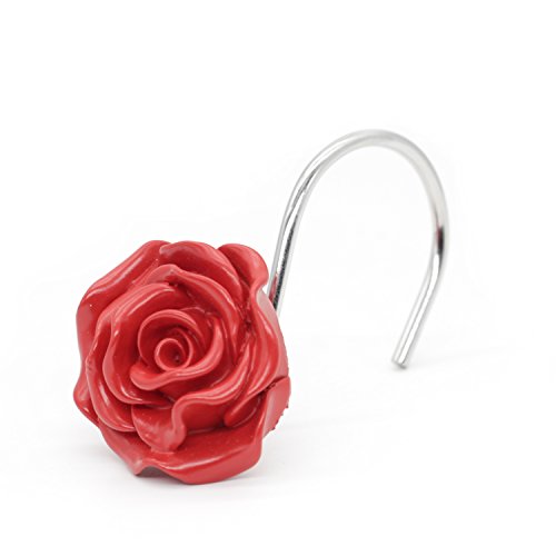 BEAVO Shower Curtain Hooks, Home Decorative Rustproof Shower Curtain Hooks Resin Rose Flower Shower Hooks Rings for Bathroom Shower Rods Curtains,Set of 12 Hooks (Red)