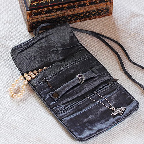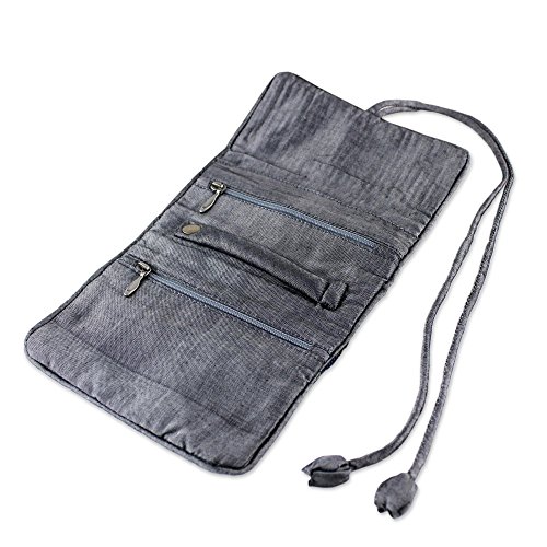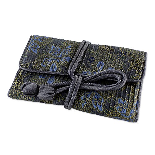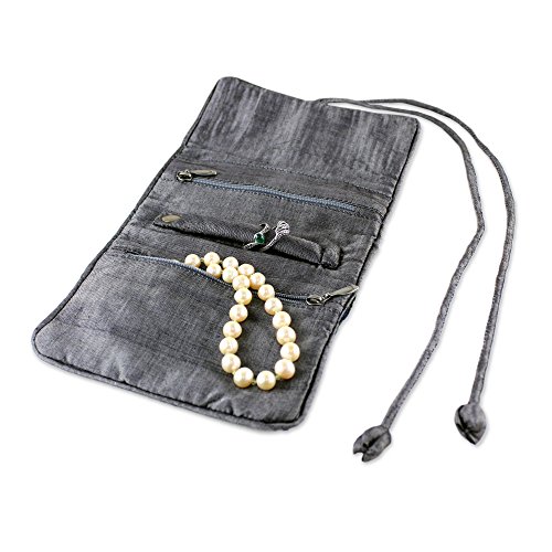 NOVICA Gray Rayon and Silk Blend Jewelry Roll, 'Slate Floral Journey'