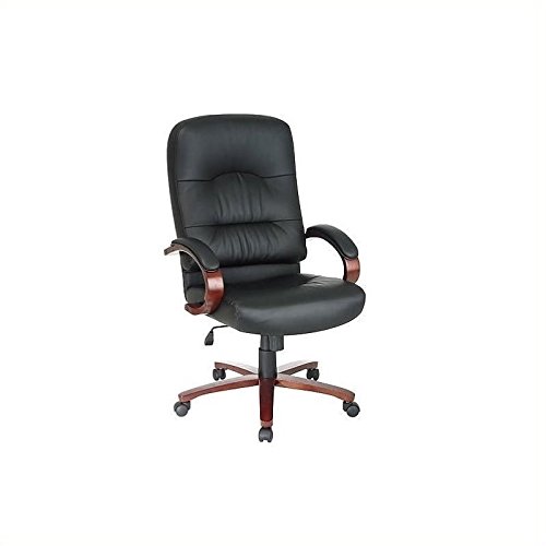 -. Title : Office Star Eco Leather High Back Chair with Wood Base and Arms, Cherry Finish