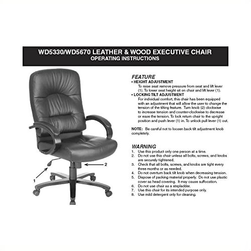 -. Feature : Thick Padded Contour Seat and Back with Built-in Lumbar Support / One Touch Pneumatic Seat Height Adjustment / Locking Tilt Control with Adjustable Tilt Tension / Padded Wood Arms / Eco Leather, Black (-EC3); Wood Covered Steel Base with Dual Wheel Carpet Casters