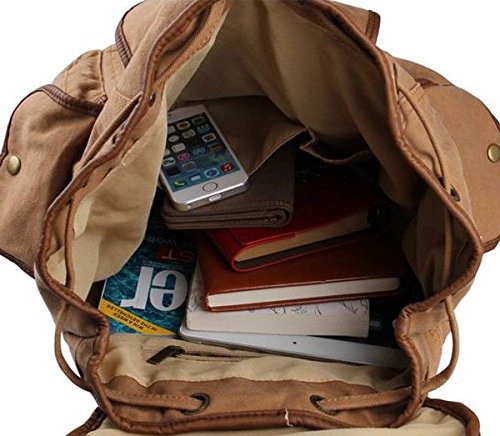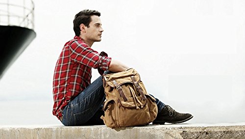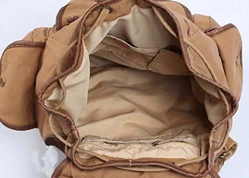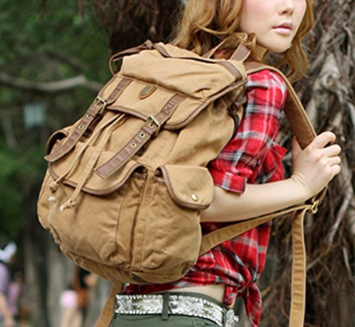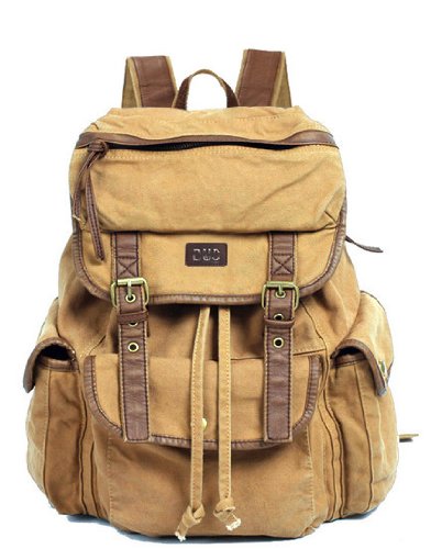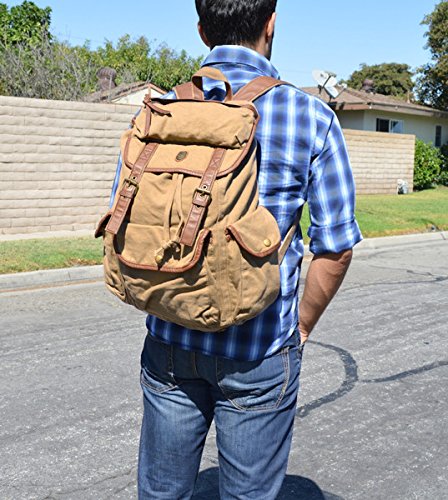 -. Title : Serbags Vintage Canvas Leather Travel Rucksack Military Backpack - Light Brown