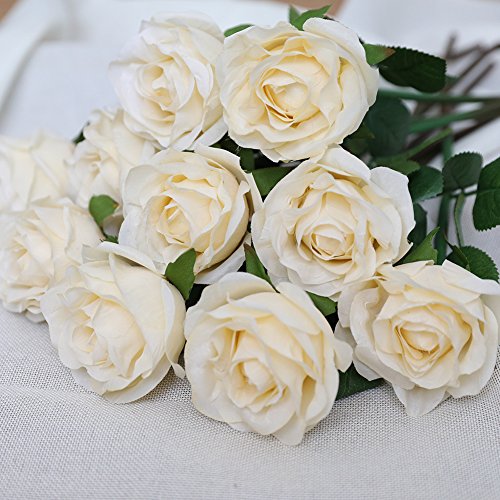 HXYRTMF Home Wedding Party Decoration Vivid Rose Artificial Flowers Decor Silk Flowers Pack of 10pcs Without Vase (champagne)