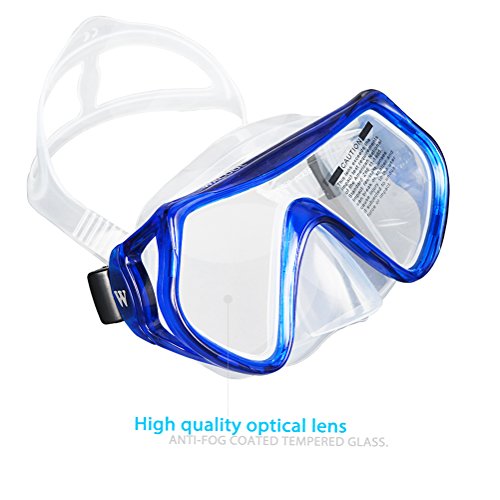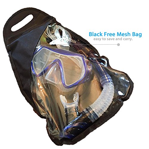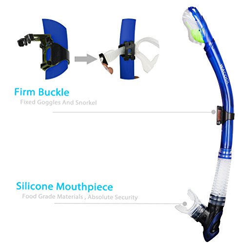 WACOOL Snorkeling Package Set for Adults, Anti-Fog Coated Glass Diving Mask, Snorkel with Silicon Mouth Piece,Purge Valve and Anti-Splash Guard,.(Blue)