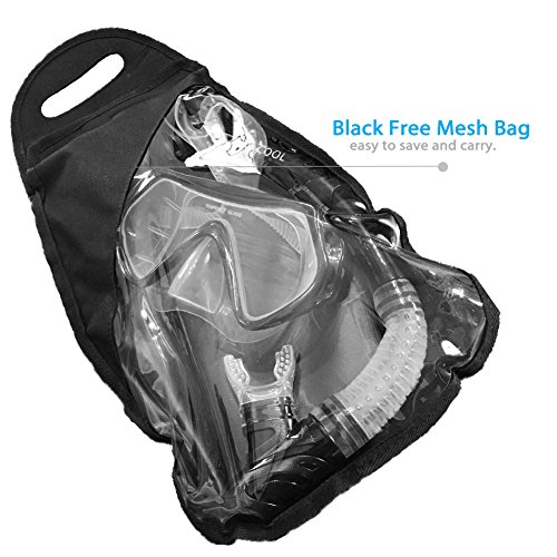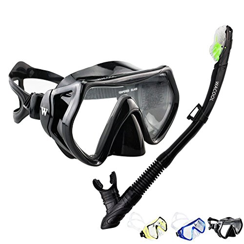 WACOOL Snorkeling Package Set for Adults, Anti-Fog Coated Glass Diving Mask, Snorkel with Silicon Mouth Piece,Purge Valve and Anti-Splash Guard,.(Black)