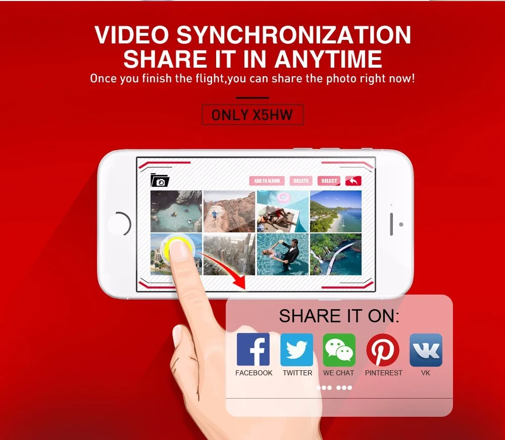 The X5UW support for all the smartphone(Ios and Android), distance of the wifi transmisson can be extended to 40 metres.