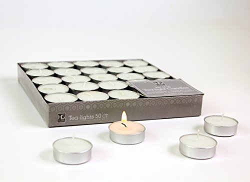 Hosley's Set of 50 Tea Light Candles, Unscented. Bulk Buy Quality Tealights. Ideal for Parties, Weddings, Spa, Aromatherapy. Hand Poured, Using a High Quality Wax Blend
