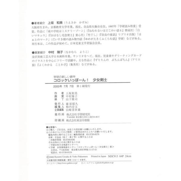 【商品基本情報】 商品名称:コロッケいっぽーん!少女剣士 著者/出版社:上坂 和美/上坂 和美 初版発行日:2000/07/07 サイズ:B5変判 ページ数:63 ISBN/JAN:4052012526/4528189372436