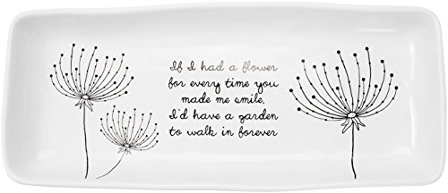 Dandelion Wishes 77151 Whimsical Line Artwork Long Serving Tray Dish, White