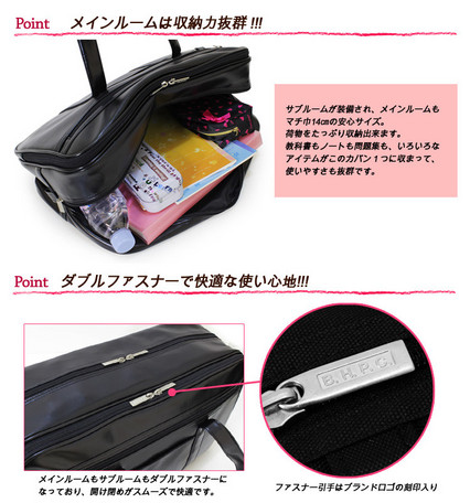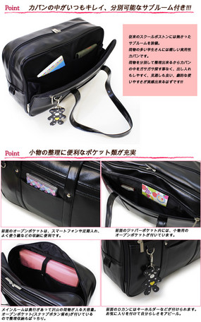 従来のスクールボストンバッグには無かった、サブルームを装備。