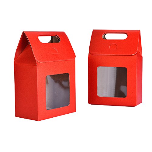 Cookies/Candy/Cake/Coffee/Tea/Nuts Bags,TtoyouU 12pcs Large Food Cookies/Candy/Cake/Coffee/Tea/Nuts Stand up Square Box Bags with Clear Window (Red)