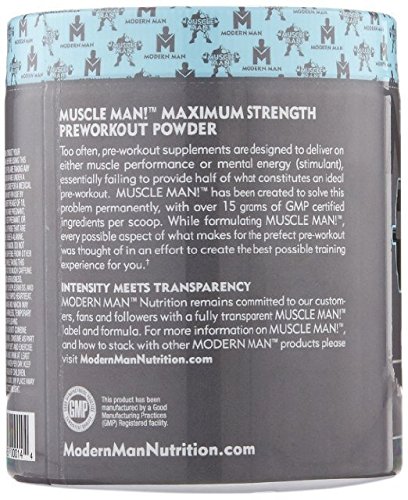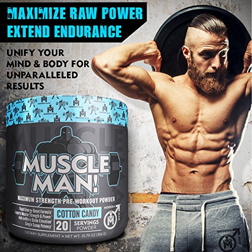 -. Binding : Health and Beauty -. Brand : Modern Man Products -. EAN : 0867965000144 -. Feature : TRANSPARENCY MEETS INTENSITY. - This is a pre-workout supplement unlike any other. REAL science with REAL ingredients to deliver UNREAL, performance amplifying results. Get the most out of your body with every single workout. / ENDURANCE, ENERGY and RAW POWER - Want to MANHANDLE the weights? Real ingredients promote real strength. With a plethora of clinically studied ingredients, Muscle Man is the pre workout for those that want to get stronger and dominate their workouts. / POWERFUL NITRIC OXIDE ENHANCEMENT - Combining several PROVEN nitric oxide enhancers in doses that would be effective as standalone supplements, we've redefined "The Pump" with Muscle Man. Elevating your N.O. levels is a key in maximizing performance. / SUSTAINED ENERGY RUSH - Perfect workouts start in your mind. Stimulation of the brain with an elite cognitive performance blends leads to synergistic perfection between mind & body, with no crash. Muscle Man is aggressively dosed with some of the best clinically studied cognitive enhancers. / NO PROPRIETARY BLEND - Why Hide? Despite what these supplement (marketing) companies say, blends are in place to mask the quality of a product. We have no need to do that and wanted to include everything open on the label so you know exactly what you are taking. Respect Modern Man. / SCIENTIFICALLY DOSED, MAXIMUM STRENGTH - Key ingredients in clinically effective dosages is what really defines Muscle Man as "Maximum Strength" pre workout formula. Beta-alanine, Betaine and Alpha GPC are amongst notables. -. IsAdultProduct : 0 -. Label : Modern Man Products -. Manufacturer : Modern Man Products -. NumberOfItems : 1 -. PackageQuantity : 1 -. ProductGroup : Health and Beauty -. ProductTypeName : HEALTH_PERSONAL_CARE -. PublicationDate : 2016-02-04 -. Publisher : Modern Man Products -. ReleaseDate : 2016-02-01 -. Studio : Modern Man Products -. Title : Muscle Man - The All-In-One Pre Workout Muscle Builder, Clinically Dosed Preworkout & Nitric Oxide Booster with Hydromax & Alpha GPC for More Focus/Energy, Power and Results, Cotton Candy, 20 Serving -. UPC : 867965000144