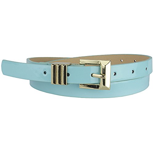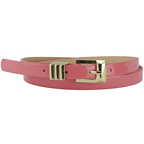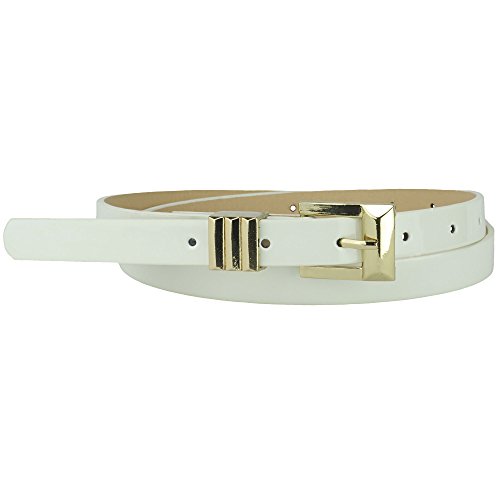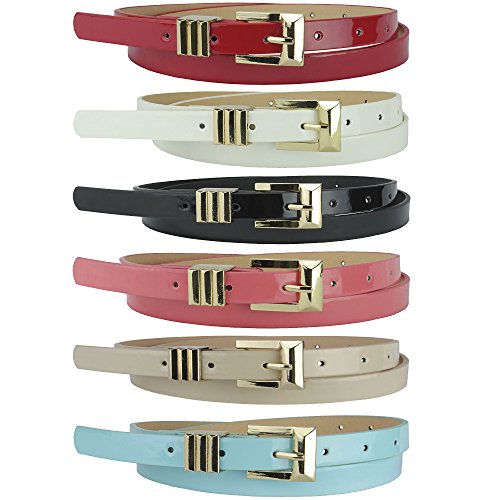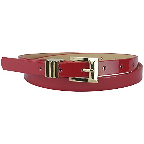 Inspired by the Art-Deco design, this sparkling Gold buckle adds just the right amount of detail to the classic skinny belt design. The result is both chic and modern. Made of faux leather and has a slick, shiny patent surface that catches the light as you move.Feature