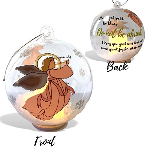 Angel Ornament - Light Up Glass Ball Ornament with Glitter Snow - Angel Design with the Saying "The Angel Said to Them" - Religious Ornament