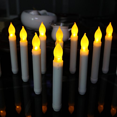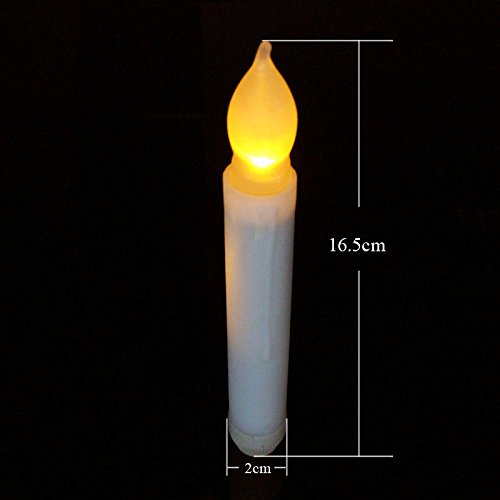 Studio : Micandle Publisher : Micandle Binding : Kitchen Product Description About LED Tape Candle with Light Bulbs Perfect for a rich holiday presentation, this taper candles is a great decorative accent in any space. Featuring a smooth body with some drip detailing and a warm flickering amber flame, these candles are the perfect head-turner whether scattered among table top wreathes or holding their own as the focal piece to a dining table set-up or mantle piece display. Package: 1. 12xLED TAPER CANDLE with Light Bulb(AA Batteries not included) ; USE INSRUCTION Unscrew ring at bottom of candle to insert batteries. Twist ring clockwise to turn candle on and counter-clockwise to turn off. 0