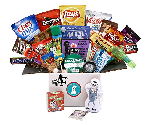 -. Binding : Grocery -. Brand : Beyond Bookmarks -. EAN : 0709870999314 -. Feature : Survive the Zombie Apocalypse with this Fun Box of Halloween Treats & Zombie Themed Stress Relievers / Great Care Package for the Zombie Obsessed or Just to Celebrate Halloween / Ships within 1 Business Day / As Much a Gift as a Care Package - Wrapped in Colorful Gift Tissue and Crinkle Cut Paper with your Free Personalized Gift Message on Keepsake Bookmark / Creative, Unique Care Packages & Gifts since 2003 -. IsAdultProduct : 0 -. NumberOfItems : 32 -. PackageQuantity : 1 -. ProductGroup : Grocery -. ProductTypeName : GROCERY -. Title : Zombie Survival Kit - Celebrate Halloween or the Walking Dead -. UPC : 709870999314