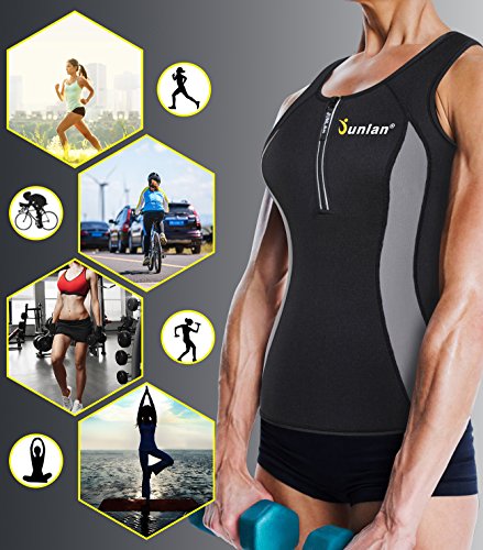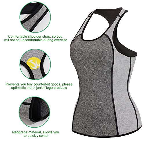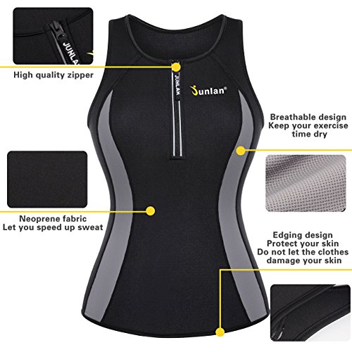 -. Binding : Apparel -. Brand : Junlan -. Department : womens -. Feature : No zipper women yoga tops design. Material: 70% Neoprene, 30% Polyester. this womens Gym Shirts' special material increases body temperature and absorbs sweat so you're always dry on the outside / This fast weight loss sport sweat enhancing thermal vest is made up of neoprene, it is specially made for workout exercise, which can make you sweat 3 times more like never before and help to flatten your tummy, Lose inches and melt the fat away! / Out fitness Runnung tanks clothes Burn your belly fat and back fat. This Hot Thermal Sweet Vest preserves body heat and stimulates sweat during workout exercise. Women work out athletic activewear will give you a sauna compression help you sweat. / Hot active body shaper undershirt makes tummy and back fat and calorie melt away. Simply wear during part of your day or workouts for fast results. this plus size ladies sleeveless wicking apparel help you jogging better / This slim tank top makes you sweat and heat up your core abdominal area to slim and reduce stomach by wearing sweat waist trainer and fat loss hot body shaper can be matched with workout shirt. -. IsAdultProduct : 0 -. ProductGroup : Apparel -. ProductTypeName : SHIRT -. Title : Junlan Women Neoprene Tank Top For Sport Weight Loss Workout Yoga Shirt Clothes Gym Vest Fitness Exercise Athletic Activewear