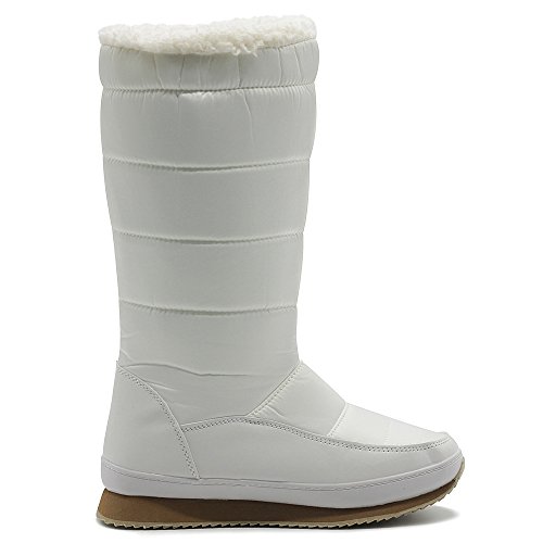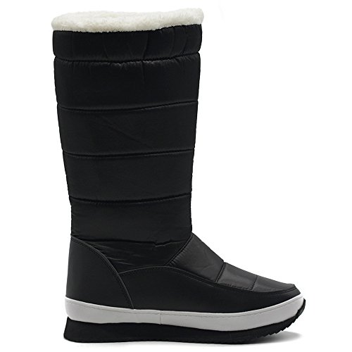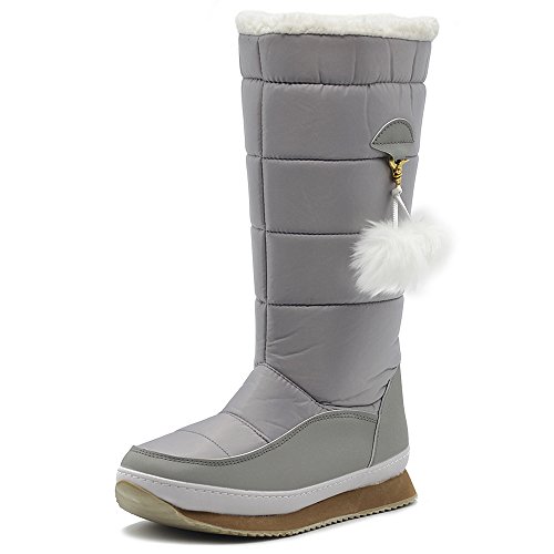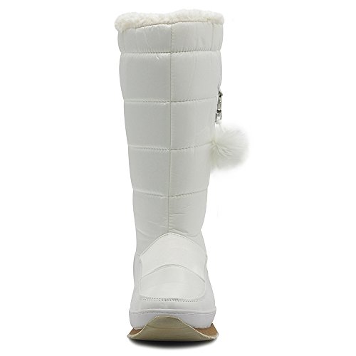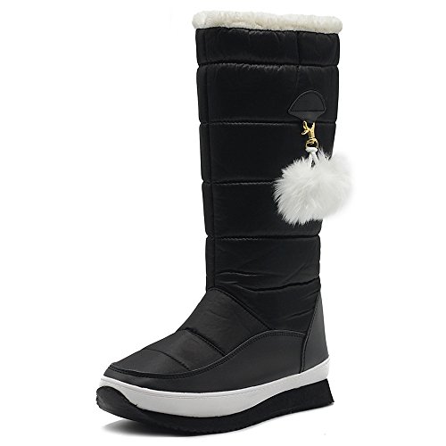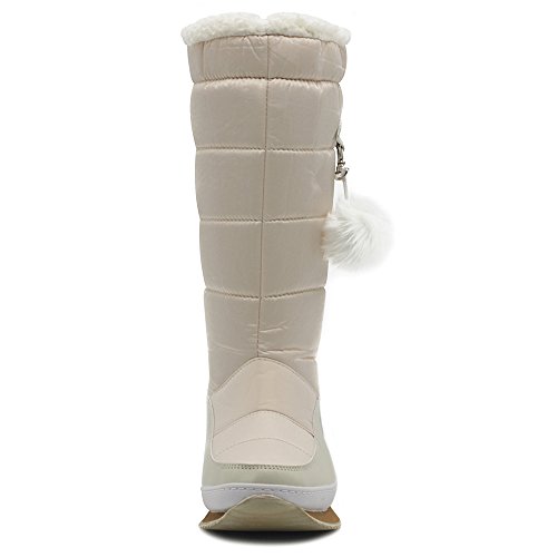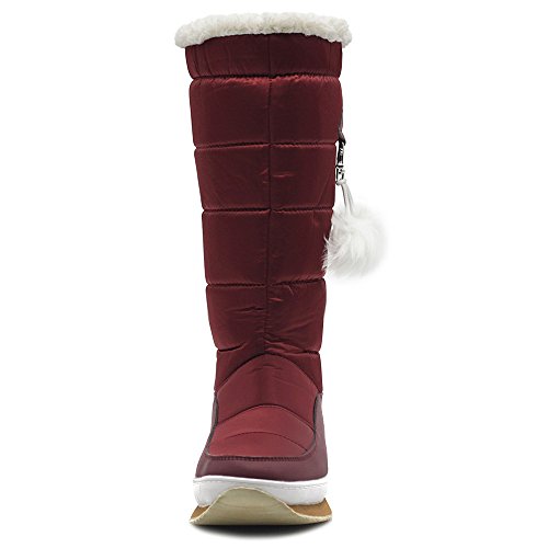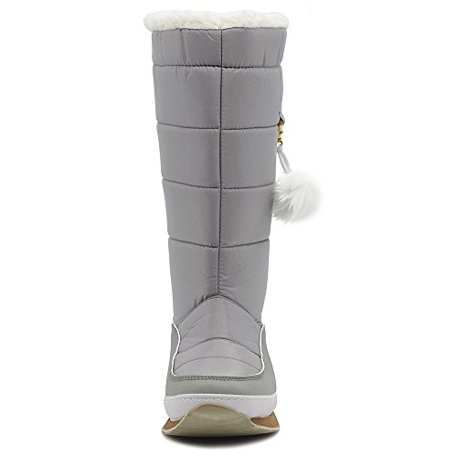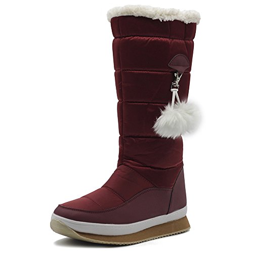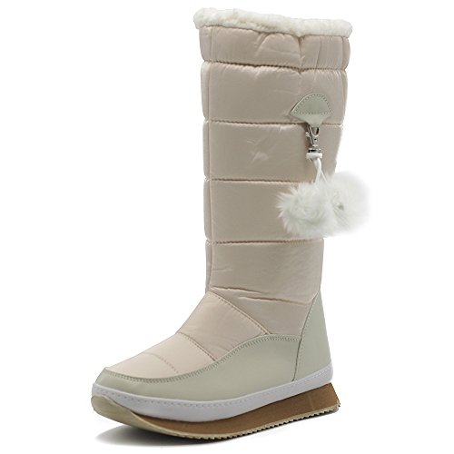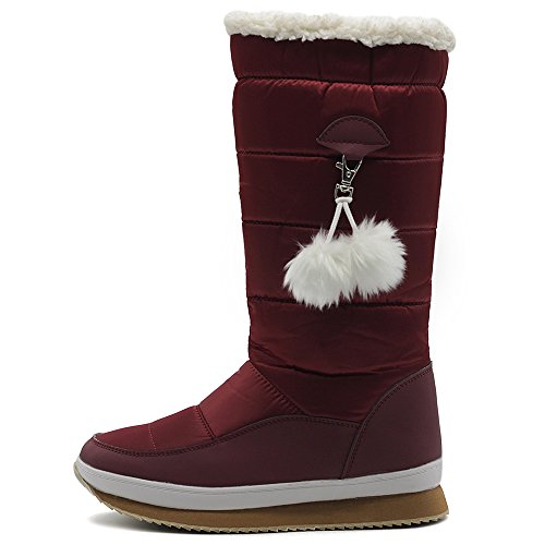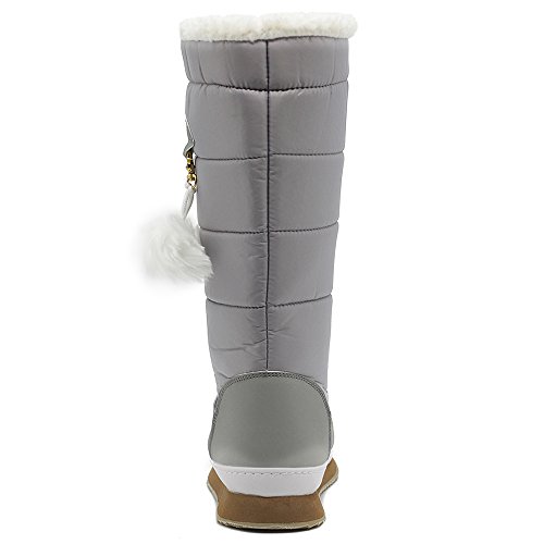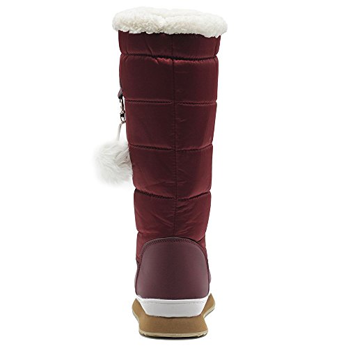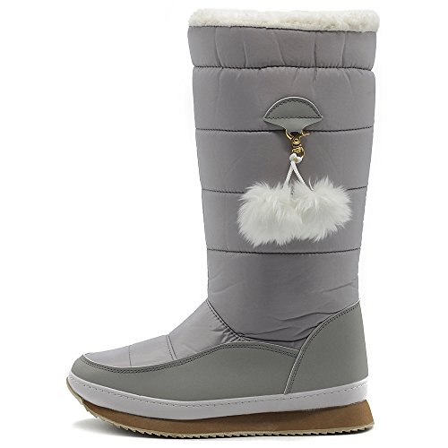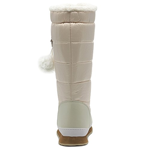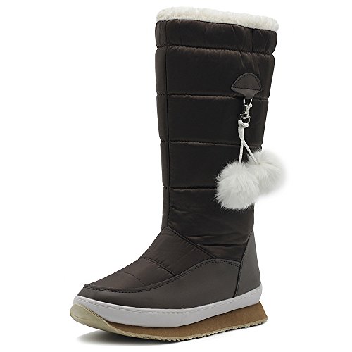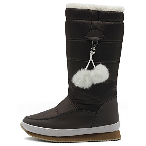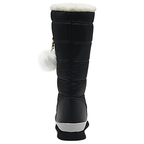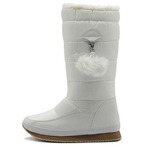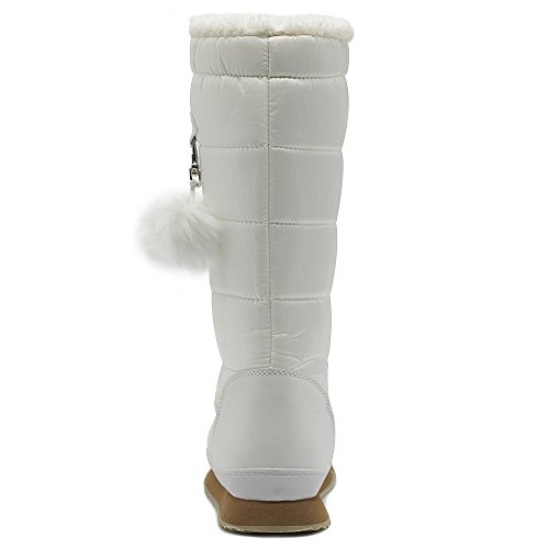 (Ollio)/Women's/Boots/DIRECT FROM USA/Ollio Women's Shoes Pompom Mid Calf Nylone Padding Quilted Fur Snow Boots