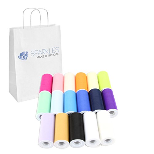 Product Description Our beautiful tulle is made from nylon mesh, and is perfect for any wedding decorating need, including pew bows, decorations, chair sashes, table pieces - even for wrapping your wedding favors or gifts. Tulle may be cut and will not unravel. Quantity: 1 Roll Material: Nylon Color: Light Blue Length: 25 yards / 75 feet Width: 6 inches Sparkles Make It Special is a US-owned business. All of our inventory is in the U.S. and ships directly from California. Plus we are proud to offer free shipping on every order. 0