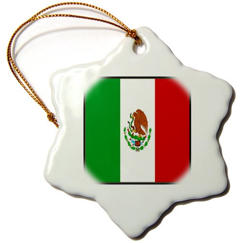 3dRose orn_98444_1 Photo of Mexico Flag Button-Snowflake Ornament, 3-Inch, Porcelain