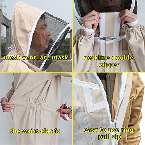 ★NATURAL COLOR: Earth color beekeeping suit minimize the attractiveness and/or alarming of the bees and yellowjackets to the presence of the beekeeper.