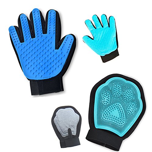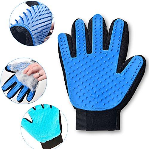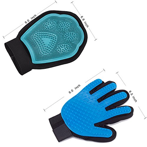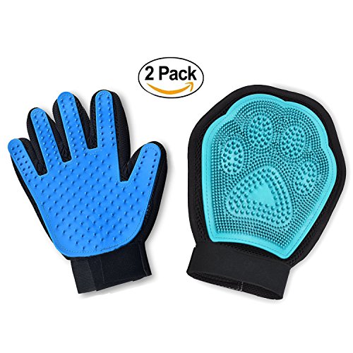 WHAT YOU GET - 2 blue Justdo pet gloves (one right-handed Five Finger pet desheding glove and a 2-in-1 grooming glove) and true quality assurance.No one glove fits all, so we put two types of gloves for short and long haired cats and dogs. Our right-handed Five Finger pet glove is perfect for long hair and another glove is effective for short hair. GET BOTH FOR THE PRICE OF ONE! And 100% satisfaction guarantee.