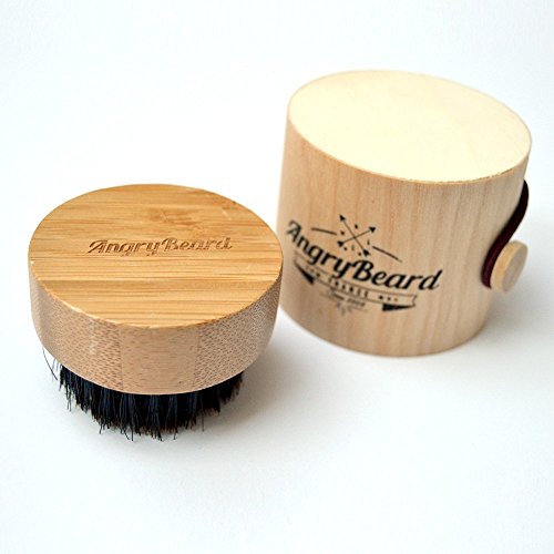Mens Beard Brush Round Beard Brush Angrybeard Small Wooden Wild Boar Bristle Beard Brush with Wooden beard Box - Beard grooming brush for Styling,...