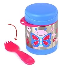 This colorful stainless steel container keeps kid-sized portions warm or cold. Store the spork, or most utensils, in the handy built-in holder so your little one is ready for meals on-the-go.