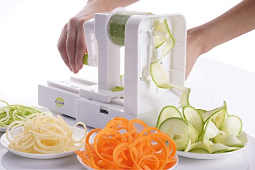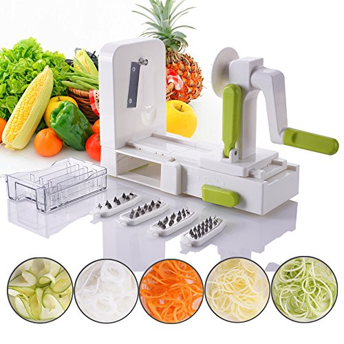 Folding 5-Blades Spiralizer - Vegetable Spiral Slicer Zucchini Spaghetti and Pasta Maker For Kitchen With Blades Storage By Vinipiak