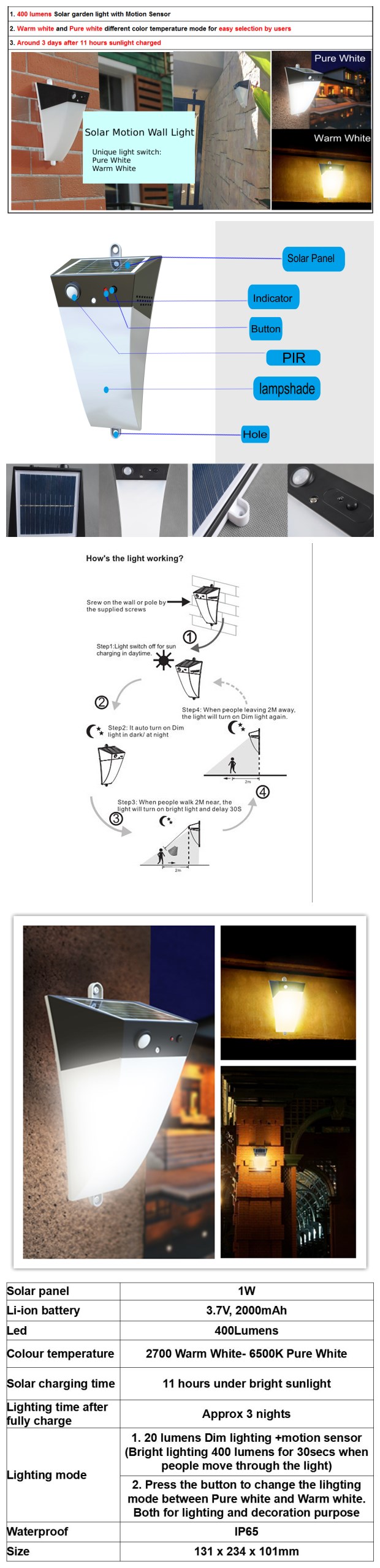 What's in the box: 1 set of integrated solar motion light with user manual