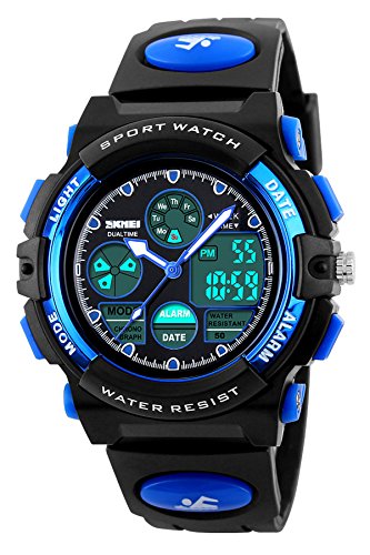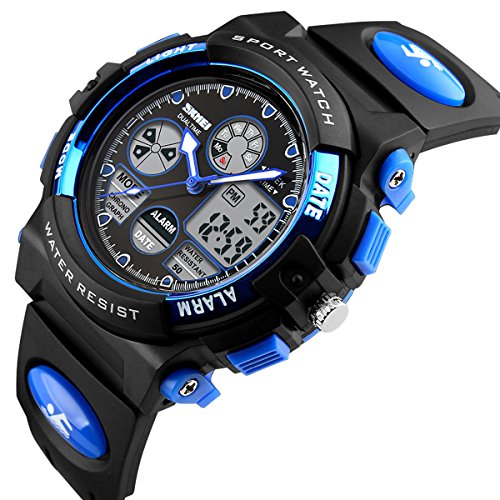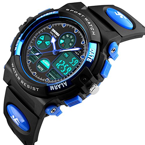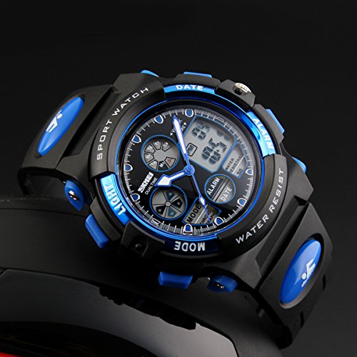 -. Title : Skmei Kids Watches Boys Digital Analog Waterproof 5ATM Dual Time Zone Sports Outdoor LED Electronic Wristwatches Blue