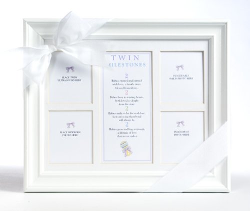 -. Feature : 8x10 white wood frame / Twin milestones sentiment / 4 spaces for photos