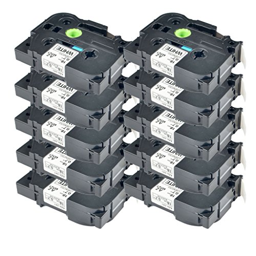 NineLeaf 10PK Label Tape Black on White Compatible for Brother TZe-241 TZ 241 TZe241 TZe 241 P-Touch 3/4" 26.2ft PT18R ,PT300, PT310, PT320, PT340, ST1150, PT1300, PT1700, PT1750, PT1760