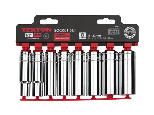 TEKTON 1/2-Inch Drive Deep Socket Set, Metric, Cr-V, 13 mm - 22 mm, 8-Sockets | 1260