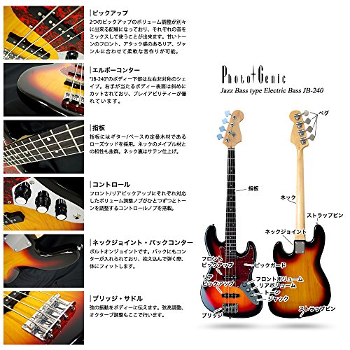 원본상품명: PhotoGenic フォトジェニック エレキベ?ス ジャズベ?スタイプ JB-240/WH/T3P ホワイト/べっ甲柄ピックガ?ド