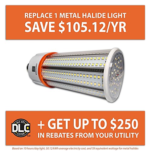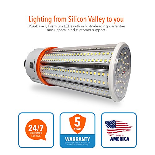 - LATEST TECH – Our 2017 (verified on box) E39 LED corn retrofit light bulbs are made with the latest tech, like the SMD2835 LED 2.0 technology that gives it an average 8115 lumens. It’s lumens/watt ranges from 115-140 depending on the enclosure (based on IES report for non-enclosed bulb). Rated to last 23 years assuming 6 hours of usage per day.