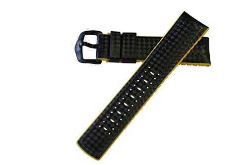 -. Title : Hirsch Performance ARYTON Carbon Fiber Leather Sport Watch Strap Rubber Lining Black w/Yellow Lining 20mm