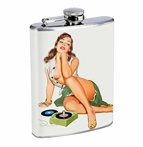 -. Title : Pin Up Girl Records Hip Flask Stainless Steel 8 Oz Silver Drinking Whiskey Spirits R1