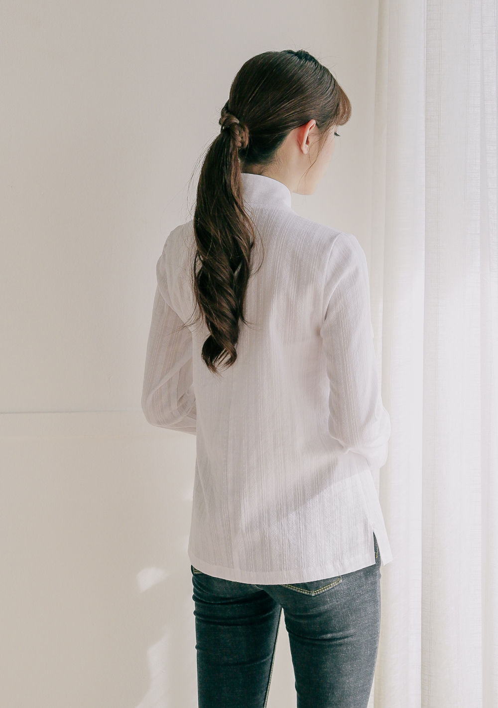 기존에 다흰 블라우스보다 얇은 소재의 화이트컬러 블라우스에요