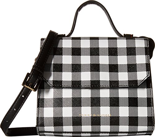 Snap-flap closure. Flat carry handle. Adjustable shoulder strap. Exterior features gold-tone hardware. Flat base. Lined interior flaunts a slip pocket. Imported.
