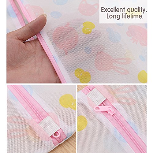 - PREMIUM QUALITY - Extra good quality mesh to protect your clothes every wash as well as in the washer. Premium pink zipper keeps the bags safety closed and won't get stuck in other laundry during wash cycle.
