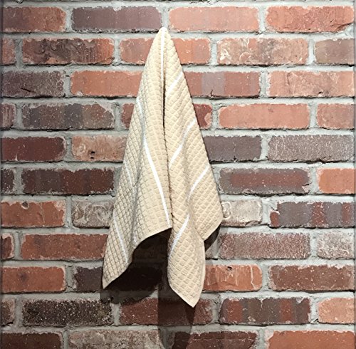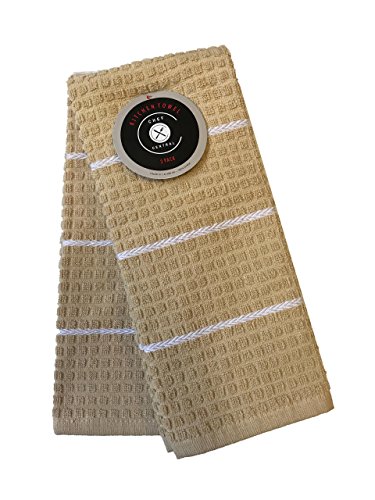 Chef Central 2 Pack Grid Stripe Kitchen Towels 16" x 26" 100% Cotton (Beige)