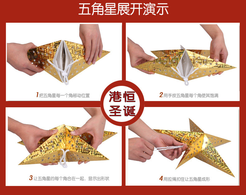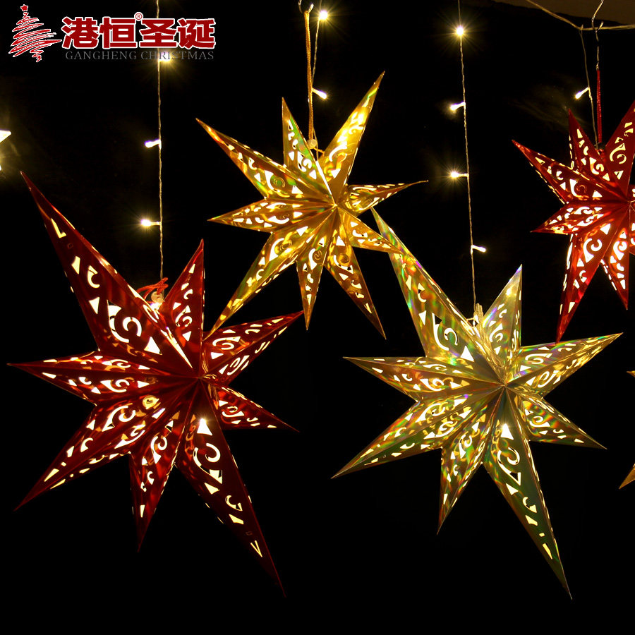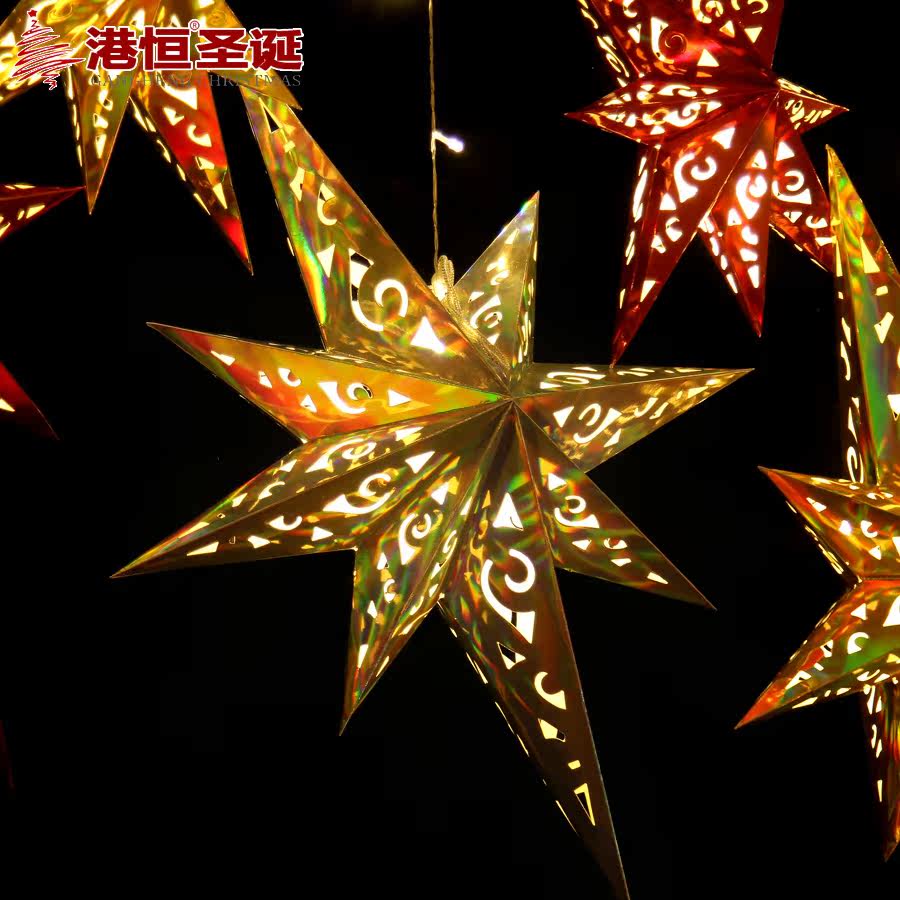 【Name】 Heng Hang Christmas decorations bar mall ceiling explosion Star Christmas five-pointed star Shade paper stars Strap【Weight】 small 75g medium 70g large 135g (kg)【Material】 thick cardboard【Size】 60-96cm