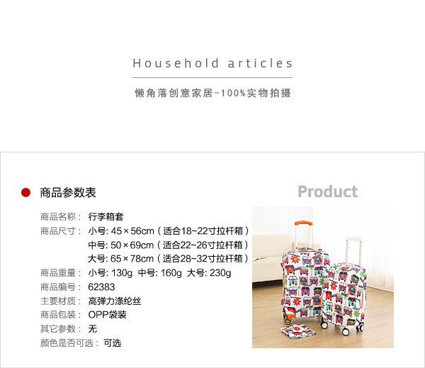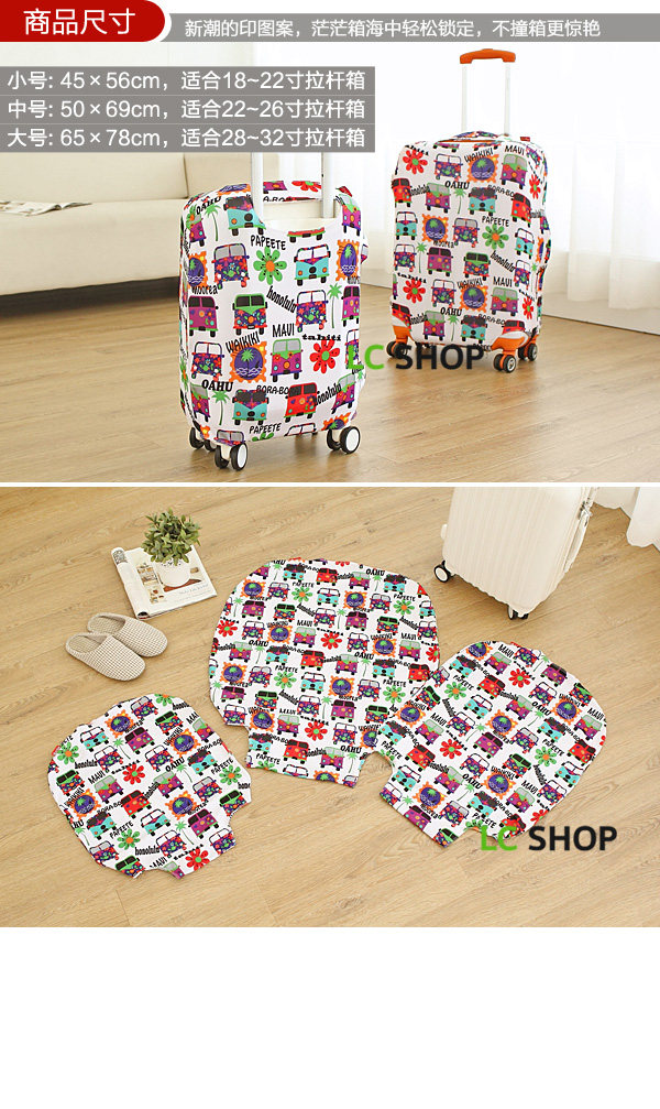 Small size: 45 * 56CM (suitable for 18-22 inch Trolley)Medium size: 50 * 69CM (suitable for 22-26 inch Trolley)Large size: 65 * 78CM (suitable for 28-32 inch Trolley)