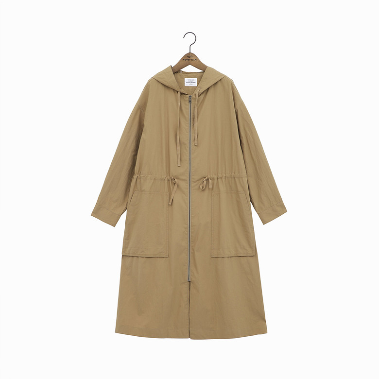 얇은 바람막이 원단의 후드 코트입니다