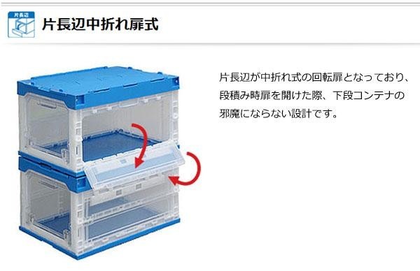 側面が透明で内容物の確認が一目でできる特長に加え、扉を付ける事により段積みした状態で内容物を取り出す事ができます。